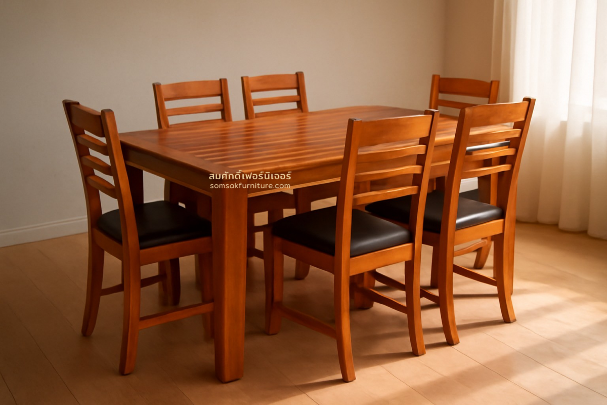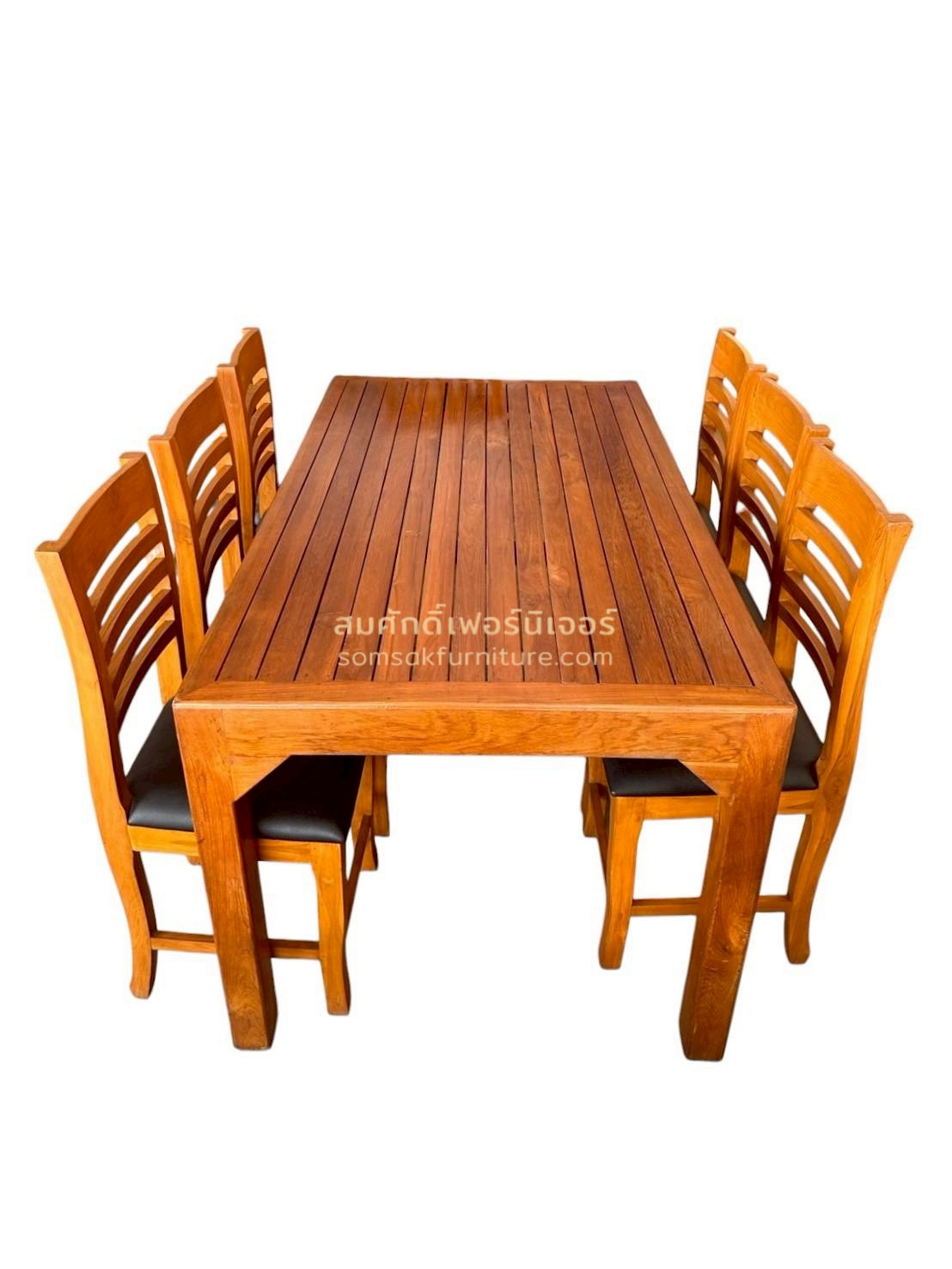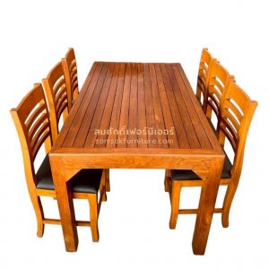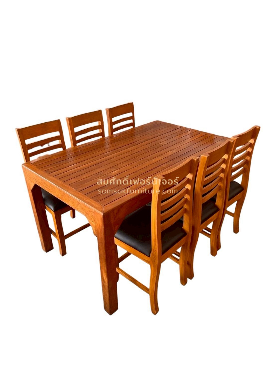 DI02 โต๊ะอาหารไม้สักแท้ + เก้าอี้ 6 ตัว